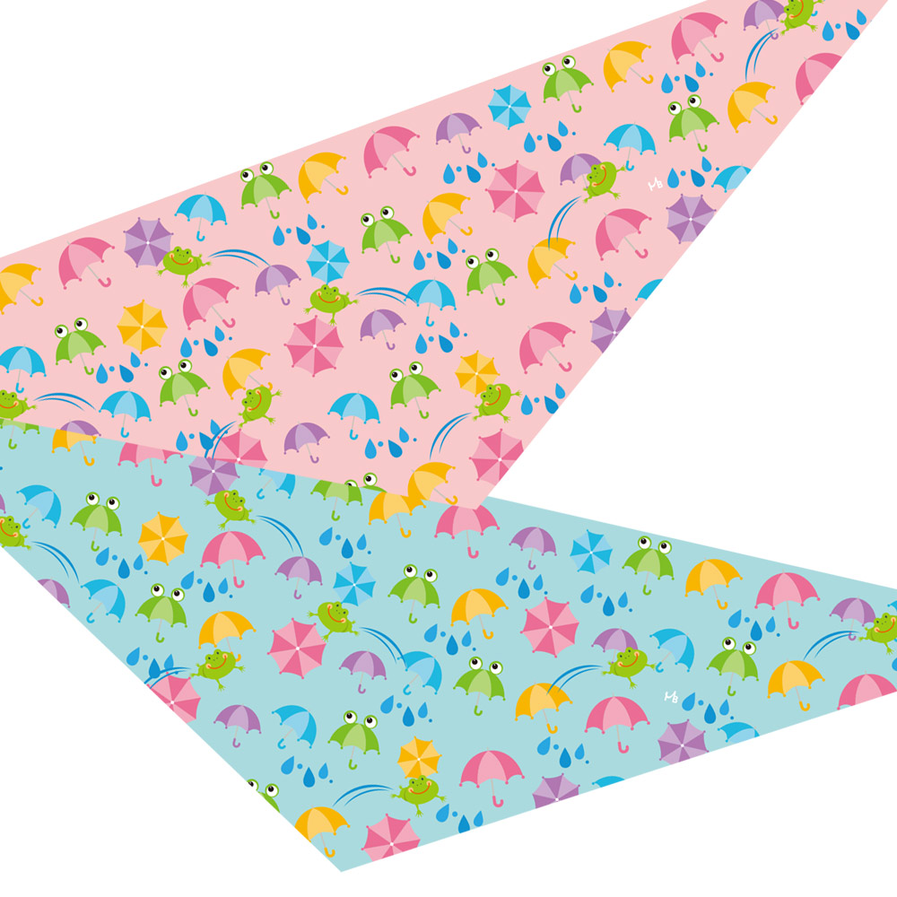 カエルが雨傘の間をぴょんぴょんと跳ね回る可愛いバンダナです♪